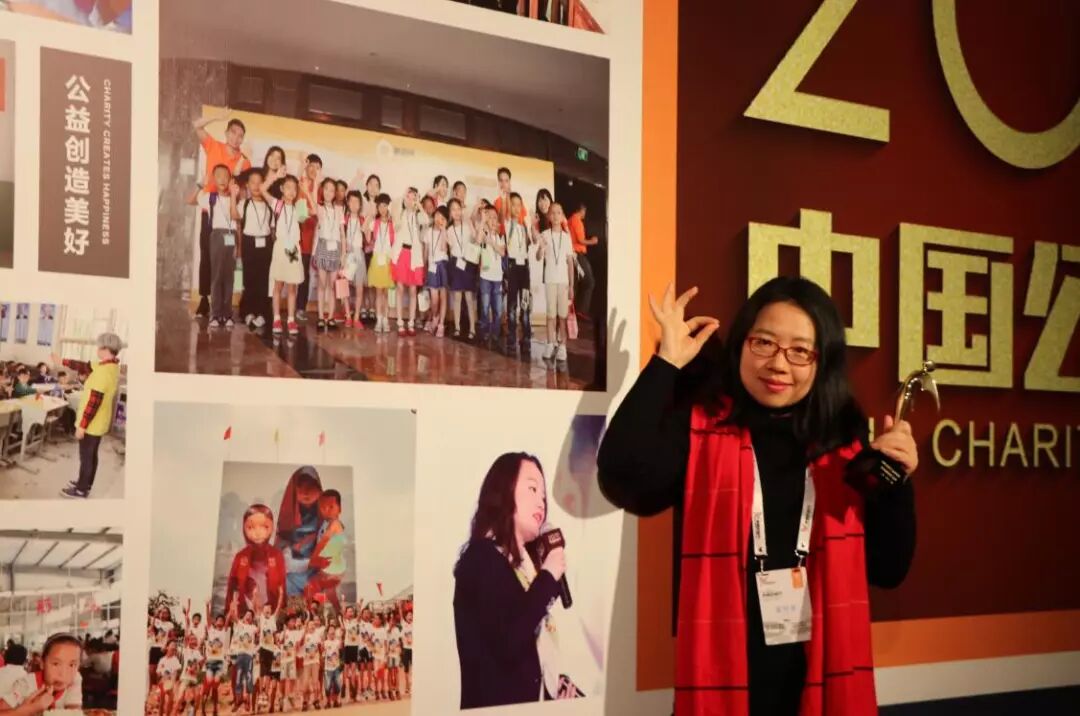 图中为亮睛工程秘书长严红代表基金会上台领奖